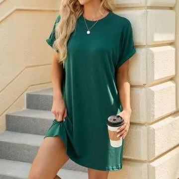 Women's Summer 2 Pack Casual Short Sleeve T-Shirt Dress Solid Color Round Neck Loose with Pockets Dresses(LYQ-Dark Green-Navy Blue-S)