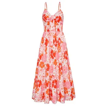 The playful ruffle hem adorned with vibrant floral prints brings a bohemian flair, perfectly suited for anything from a beach party to a summer wedding. This dress is versatile enough to transition seamlessly from day to night; simply pair it with your favorite accessories, chic sandals, or statement earrings to elevate your look. The adjustable spaghetti straps ensure a personalized fit, accommodating various body shapes and preferences, allowing you to flaunt your style with confidence.