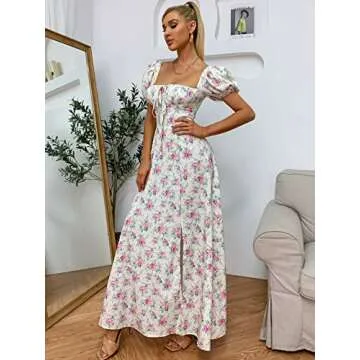 In the flooded market of summer dresses, the Women's Summer Puff Sleeve Floral Print Split Maxi Dress stands out with its unique combination of comfort and stylish design. While many dresses may prioritize one over the other, this piece expertly blends wearability with elegance. Competitors might offer basic cotton materials or limited styling options, but with our dress, you receive a custom fit that flatters your figure, social versatility, and rich, vibrant prints that are a seasonal must-have.