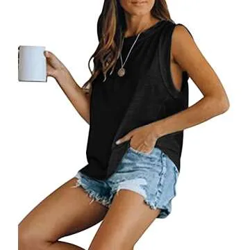 Women's Summer Sleeveless Tank Top Loose Fit Casual Crew Neck T Shirts Basic Tee Tops Black