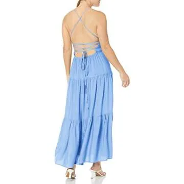 Beautiful Women's Summer Strappy Backless Boho Maxi Dress (L, Blue)