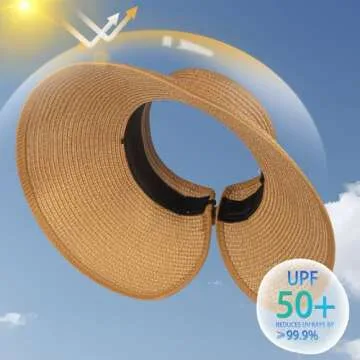 Women's Sun Visor Hats Wide Brim Straw Beach Hat Ponytail Hats for Women Foldable Floppy