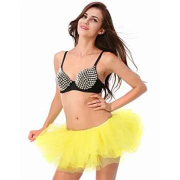 Women's Teen Adult Classic Elastic 3 4 5 Layered Tulle Tutu Skirt (One Size, Yellow 5Layer)