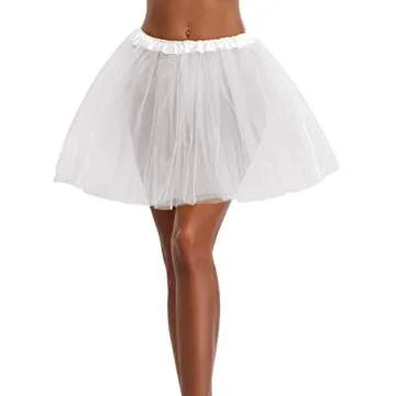 Women's, Teen, Adult Classic Elastic 3, 4, 5 Layered Tulle Tutu Skirt (One Size, 3Layer-White)