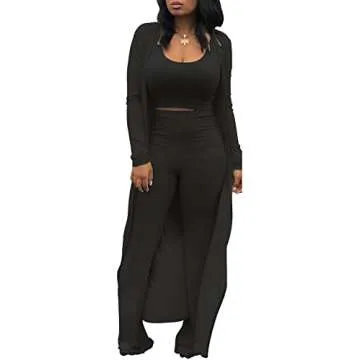 Unlike many two-piece sets on the market, our three-piece ensemble provides added versatility and layering options. While other outfits may lack the elegance of a blazer, our tracksuit seamlessly marries comfort with sophistication. Competitors often rely on synthetic materials that do not offer the breathability and stretch of our cotton and spandex blend, ensuring that our outfit stands out in terms of comfort, quality, and style.