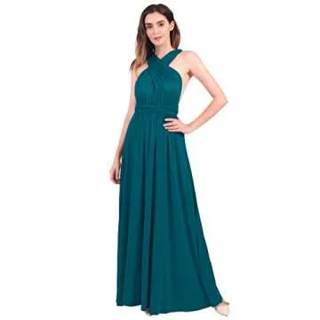 Women's Transformer Convertible Multi Way Wrap Long Prom Maxi Dress Sleeveless Halter V-Neck
