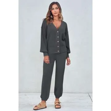 Women's Two Piece Trendy Outfits Cozy Knit Loungewear Sweater Sets Oversized Slouchy Matching Lounge Sweatsuit