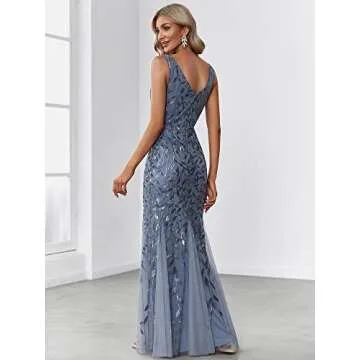 Women's V-Neck Embroidered Lace Floor Length Mermaid Dress Haze Blue US6
