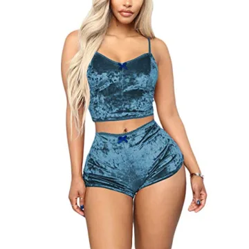 Introducing the Women's Velvet 2 Piece Outfit, an exquisitely designed spaghetti strap backless crop top and shorts set, perfect for those who value both comfort and style. Made from a luxurious blend of velour, cotton, and polyester, this pajama set not only exudes glamour but also ensures a lightweight and breezy feel during those warm nights. Each item in this collection features charming bowknot decorations that lend a chic accent to...