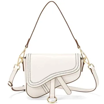 Women's Vintage Stitching Mini Saddle Bag Crossbody Shoulder Strap Small Purse (White)