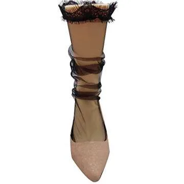 Women's Vintage Style Sheer Slouch Socks Black Luxury Lace Loose Fit See Through Mesh Tulle Medium Calf Socks (Black)