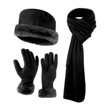 Stylish Women's Warm Fleece Hat Scarf and Glove Set with Fur Trim