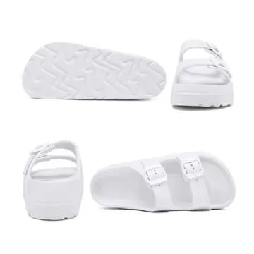 Women's White Platform Sandals with Arch Support, Adjustable Two Strap Thick Soles Sandal, Comfort Lightweight Slides Beach Home and Street