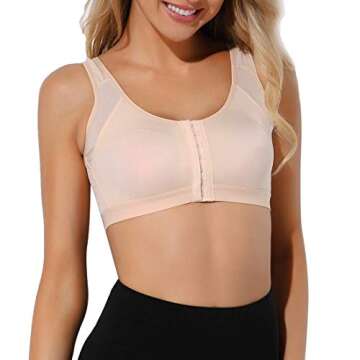 Women's Wireless Post Surgery Sports Bra Front Closure Comfort Brassiere with Adjustable Straps Beige