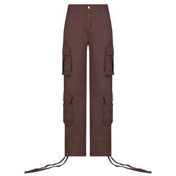 Women's Y2K High Rise Baggy Straight Leg Cargo Pants Streetwear Casual Boyfriend Trousers with Pockets Brown