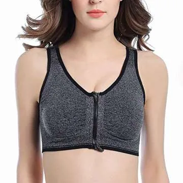 Women's Zip Front Sports Bra Wireless Post-Surgery Bra Racerback Active Yoga Sports Bras Plus Size Sports Bra Pack Mastectomy Bras for Women Front Closure Bra (Large, 3 Pack(Black+White+Grey))