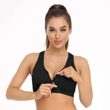 Women's Zip Front Sports Bra Wireless Post-Surgery Bra Zipper Closure Bras Padded Surgical Bra Racerback Workout Bras Yoga Sports Bras Bust Reduction Bra(Medium, 3 Pack(Black+Grey+Bean Paste))