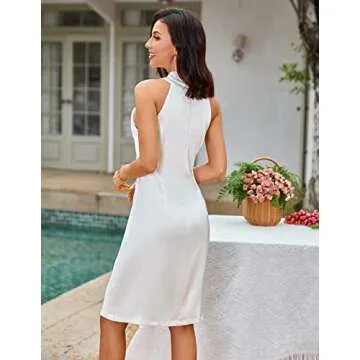 Women Satin Mini Dress Halter Dress Silky Party Cocktail Dress White L