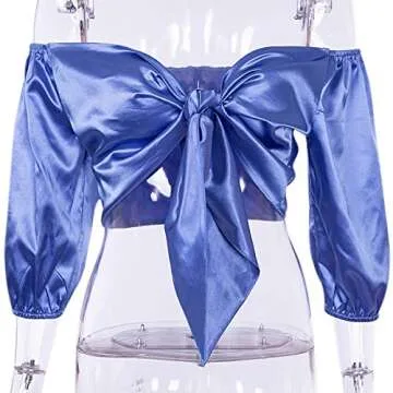 Show more Introducing the ultimate fashion statement - our exquisite women's off-the-shoulder crop top crafted from luxurious satin. Designed for those who embrace elegance, this top features a unique ability to transform into various stylish looks, catering to your mood and occasion. With a comfortable size of 9.8'' in length, bust measurements ranging from 30.7'' to 37.4'', and a waist size between 24'' and 31.5'', this versatile top truly embodies the essence of adaptability. The silky soft fabric ensures you experience nothing short of comfort against your skin, letting you strut with confidence.