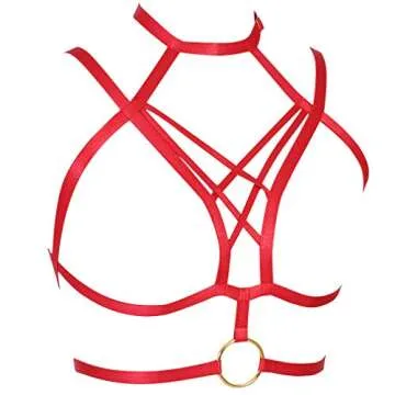 Women Sexy Cage Body Harness Bra Strap Crop Tops Lingerie Punk Goth Fetish Wear (Red)