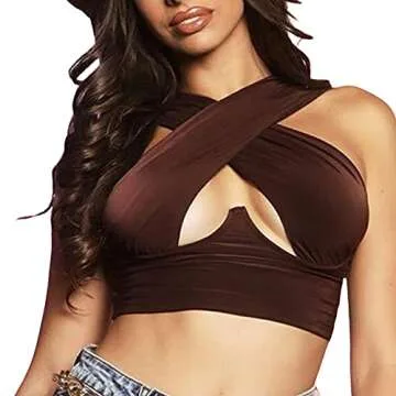 Women Sexy Halter Crisscross Tank Crop Top for Summer Fun and Style