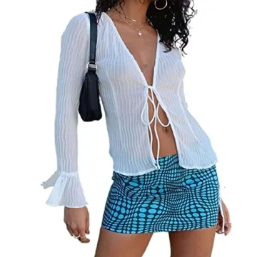 Introducing the Women Sheer Lace Up Blouse Mesh Flare Sleeve Crop Top Y2k Vintage Streetwear – an exquisite blend of style and comfort crafted for the modern woman. This top features a stunning sheer design made from high-quality polyester, ensuring a breathable and lightweight feel that is perfect for layering or wearing solo. With its unique vintage button-down shirt style and vibrant flair, it adds an essential touch of chic to any outfit. The white flare sleeves...