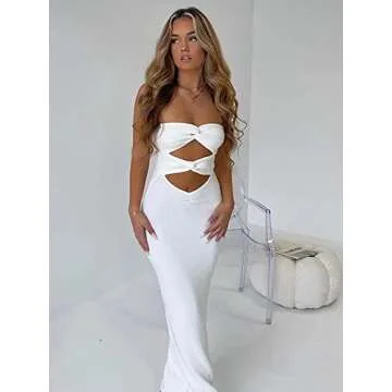 Women Sleeveless Hollow Out Long Summer Dress Casual Backless Bodycon Y2k Dress Night Party Dress Streetwear(BB White,S)