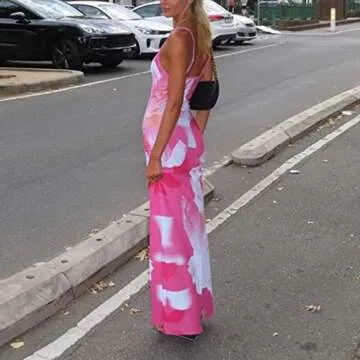 Women Sleeveless Maxi Dress Backless Bodycon Floral Printed Spaghetti Strap Long Dress Vintage Clubwear Summer(P-Pink, M)