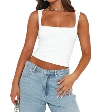 Show more Introducing the Women Sleeveless Strappy Crop Top Square Neck Skinny Cami Top Y2k Lace Cropped Tank Top, the must-have addition to your summer wardrobe. This chic and stylish tank top is made from premium polyester fiber, offering a soft, breathable, and lightweight feel that you’ll love. Its stretchy design ensures a comfortable fit that moves with you, making it perfect for all-day wear. Whether you're heading out for brunch with friends or hitting the dance floor, this crop top is the ideal canvas for showcasing your unique style. With its vintage Y2K aesthetic, it stands out with a square neck, delicate lace trim, and a flattering slim fit, embodying both elegance and edge. Perfectly versatile, this top can be dressed up with high heels or down with your favorite sneakers, offering endless outfit possibilities.