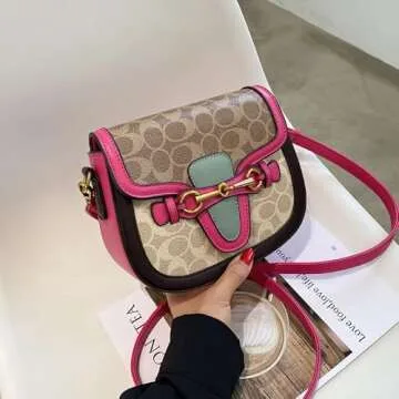 Women Small Crossbody Bags Women Golden Buckle Leather Purse Handbag Fashion Design (pink)