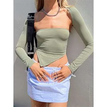 The navel-exposing length offers a trendy twist, while the unique tube top design, paired with long sleeve shrugs, ensures you stay comfortable yet fashionable. This crop top is not just a piece of clothing; it's a statement that reflects your unique style and confidence.