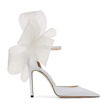Women Stiletto High Heels Pumps with Asymmetric Grosgrain Mesh Bows Lace Ankle Strap Buckle Closed Pointed Toe Sexy Wedding Shoes Party Dressy Sandals 3.14 in White Size 9