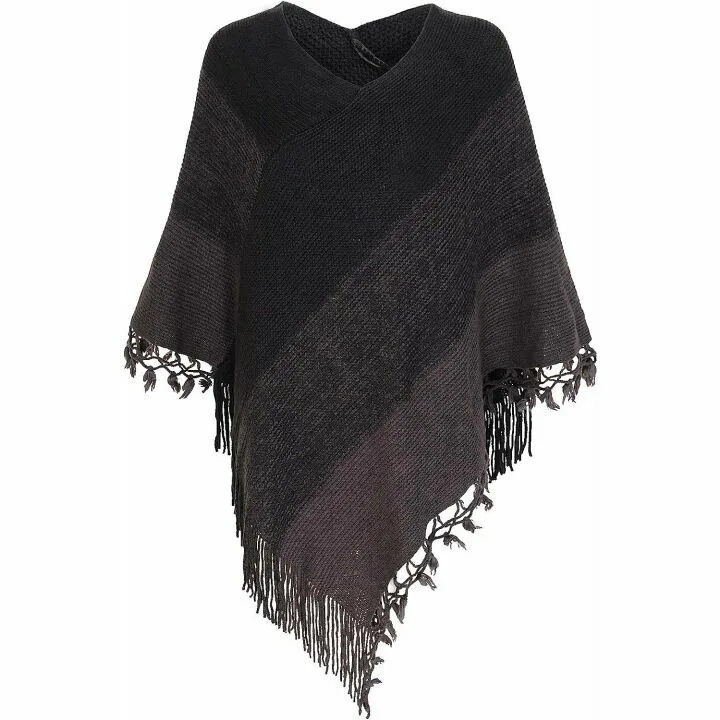 Stylish Women's Striped Poncho with Tassels - Cozy Knit Shawl & Cape