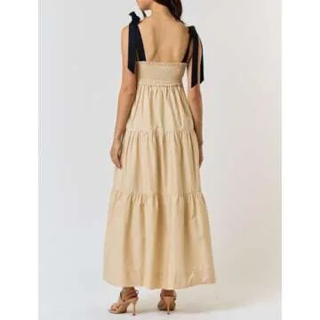 What sets this dress apart from other summer maxi dresses on the market is its unique combination of **style, comfort, and functionality**. While many dresses may sacrifice comfort for aesthetic appeal, this design ensures that you will look fabulous while feeling great. The attention to detail in the ruffled tie straps and flowy tiered skirt gives it a distinctive boho flair that cannot be easily found in other brands. Plus, the available colors and prints cater to various tastes, ensuring that there's something for everyone.