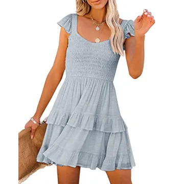 Show moreIntroducing the Women Summer Dresses Casual Boho Smocked Ruffle Sun Beach Babydoll Mini Dress - the ultimate summer staple that will elevate your wardrobe to new heights! With its exquisite design, this dress is expertly crafted to flatter figures of all shapes and sizes. The soft, breathable fabric ensures you stay cool during warm weather while its unique cut highlights your bust and cinches at the ribcage for an effortlessly elegant silhouette.