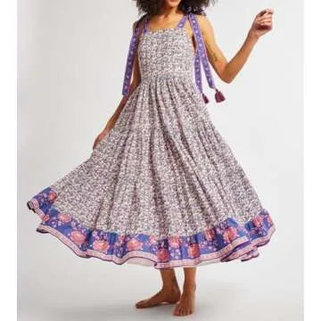 Show more The Summer Maxi Dress is not just a piece of clothing; it's a statement. Designed for women who love to blend comfort with style, this boho sundress is crafted from lightweight polyester that feels soft against your skin, making it an ideal choice for those hot summer days. The flowy silhouette and sleeveless design provide a relaxed fit, allowing for easy movement whether at the beach, a wedding, or a casual outing with friends. This dress comes with stunning features like tie shoulder straps and a smocked bodice, offering a feminine touch that flatters every body type.