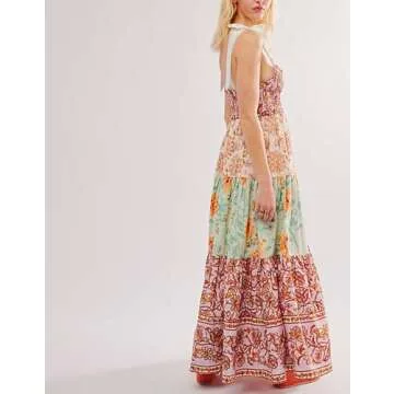 When compared to other brands, the Women Summer Dresses Flowy Smocked Maxi Dress stands out due to its unique fabric blend that offers both style and comfort, setting it apart from many synthetic options available. While other dresses may lack the adjustable features of tie shoulders or true sizing flexibility, this dress ensures both customization and an inclusive fit. Furthermore, its vibrant floral patterns and versatile appeal cater to a wider range of occasions, enhancing its value as a staple in any wardrobe.