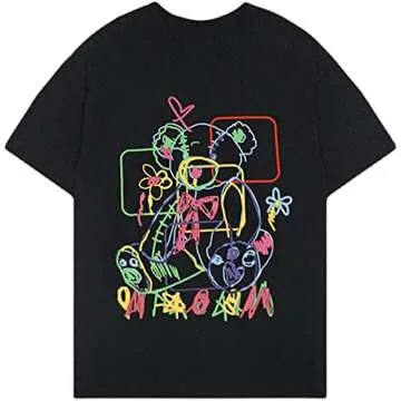 Women Summer Gothic T-shirt Anime Aesthetic Print Harajuku Fashion Casual Tops (Black, XL)