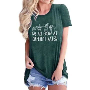 Women Teacher Shirt We All Grow at Different Rates Graphic Tees Preschool Special Education Teacher Top
