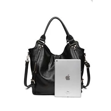 Women Tote Bag Handbags PU Leather Fashion Hobo Shoulder Bags with Adjustable Shoulder Strap, L, Black