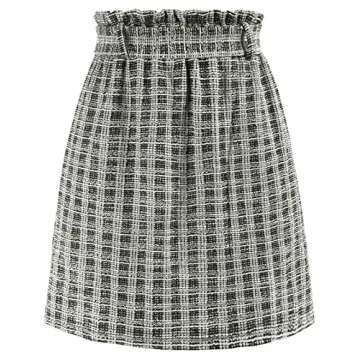 Women Tweed Plaid Skirts High Waist Short Mini Skirt for Fall Casual Bodycon Skirts Black