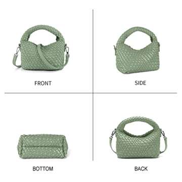 Women Woven Tote Small Crossbody Bag, Weave Quilted Purse Square Shoulder Bag Woven Handbag with Detachable Strap