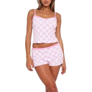 Show moreDiscover the fabulous Women Y2K 2 Piece Lace Cami Shorts Set, an enchanting pairing of a cute bow crop top and matching shorts designed to elevate your lounge experience. Made from a high-quality polyester blend, this set is not only soft and skin-friendly but also wear-resistant, elastic, and breathable, ensuring that you stay comfortable and stylish all day long. With its adjustable spaghetti straps and high-waist elastic shorts, you're guaranteed a slim fit that highlights your silhouette beautifully. Step into the world of retro fashion with this aesthetic outfit that perfectly balances chic style and comfort, making it an essential addition to every fashion-savvy woman's wardrobe.