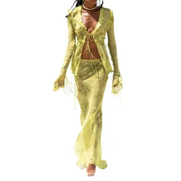 While other outfits may offer similar styling, the Women Y2K 2 Piece Long Skirt Set shines with its unique floral mesh design and the comfort of its high-quality fabric. Many competitors' sets compromise on comfort for style, but this set delivers on both, ensuring you look fabulous without sacrificing ease of movement. Moreover, the extensive size ranges and trendy accents set it apart from standard offerings on the market.