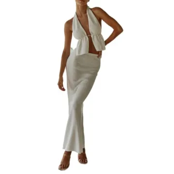 Show more Step into the spotlight with the amazing Women Y2K 2 Piece Long Skirt Set, expertly crafted to enhance your elegance and style. This stunning set features a flattering V-neck halter crop top and an off-shoulder slim-fit tube top that showcases your curves beautifully. Made from a comfy and breathable polyester blend, this outfit is not only chic but also incredibly wearable for any occasion. The unique design includes a high-slit maxi skirt that flows effortlessly, allowing for maximum movement while you dance the night away or enjoy a relaxing day out.
