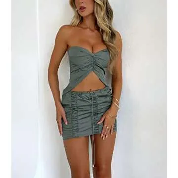 Embrace your style with this strapless slim fitted crop top and skirt set, which can be paired effortlessly with high heels, jewelry, and handbags. The long sleeve elegant cover-up offers an additional layer of sophistication, making it great for both summer days and cooler evenings.
