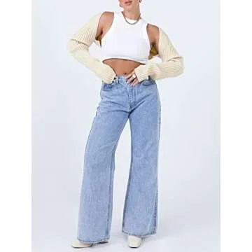 Women Y2K Crochet Shrug Sweater Knit Long Sleeve Crop Tops Bolero Cardigan Cover Ups Solid Color Rib Knitted Streetwear Beige