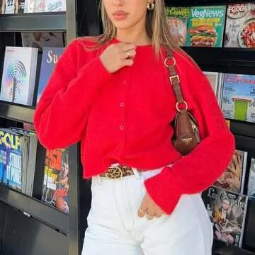 Women Y2k Crop Cardigan Sweater Crop Button Down Cardigan Cute Long Sleeve Sweater Open Front Lightweight Knit Tops A Red