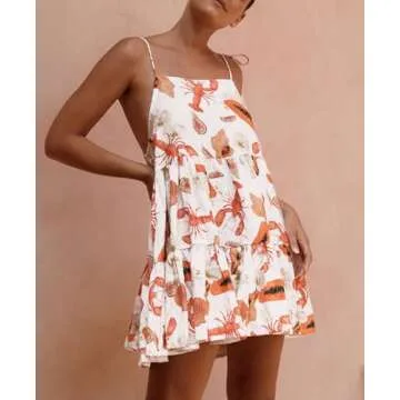Show more Introducing our Women Y2K Cute Mini Dress, a one-of-a-kind blend of style and comfort designed for the modern woman. This eye-catching dress is adorned with a vibrant tropical fruit print that's perfect for those who want to make a statement. Crafted from premium polyester, this A-line dress is lightweight, breathable, and oh-so-soft against the skin, making it an ideal choice for warm summer days and nights. The spaghetti straps and backless cutout design add a flirty touch, while the ruffled hem enhances the feminine silhouette. Whether you're heading to a beach party or a casual afternoon outing, this dress promises to turn heads and keep you feeling fabulous.