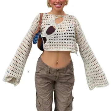 Show more Introducing the Women Y2K Hollow Out Top Long Sleeve Crochet Knit Crop Top - the ultimate statement piece for fashion-forward individuals! Made from a high-quality cotton blend, this sexy see-through fishnet top offers both comfort and breathability, ensuring you feel as fabulous as you look. With its unique hollow-out design, this long sleeve crop top channels a vibrant Y2K vibe that’s perfect for any occasion. Whether you’re dressing for a night out or seeking a chic, casual everyday look, this top adapts effortlessly to your wardrobe's needs.